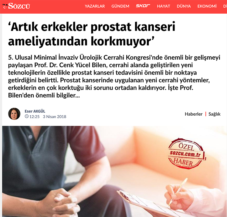 5. Ulusal Minimal İnvaziv Ürolojik Cerrahi Kongresi’nde önemli bir gelişmeyi paylaşan Prof. Dr. Cenk Yücel Bilen, cerrahi alanda geliştirilen yeni teknolojilerin özellikle prostat kanseri tedavisini önemli bir noktaya getirdiğini belirtti. Prostat kanserinde uygulanan yeni cerrahi yöntemler, erkeklerin en çok korktuğu iki sorunu ortadan kaldırıyor. İşte Prof. Bilen’den önemli bilgiler… Haberi devamı için tıklayınız.