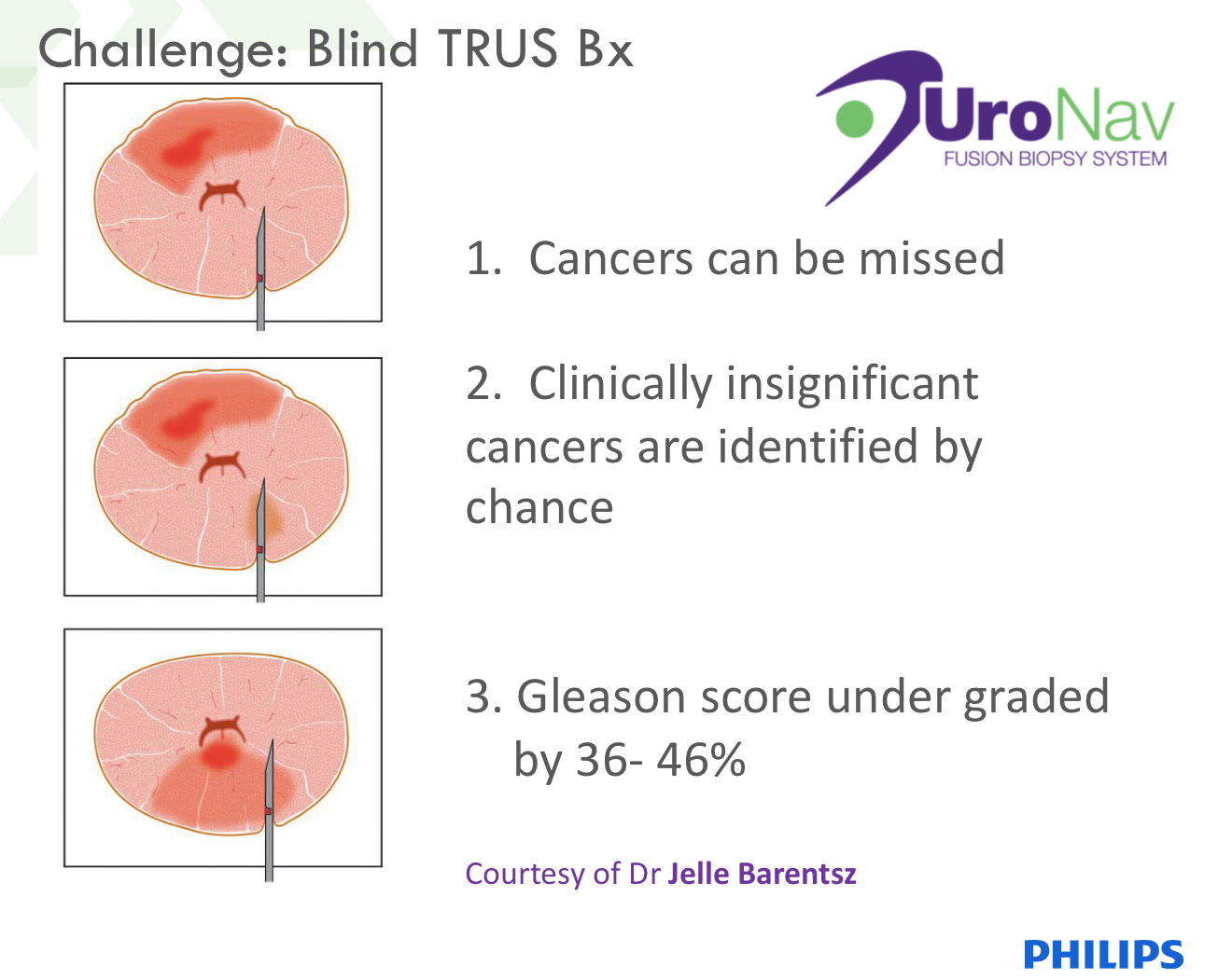Kör biyopsi tabir edilen ve hala yaygın kullanımı olan biyopsi yönteminde (satürasyon biyopsi) Ultrason eşliğinde prostatın farklı bölgelerinden rastgele alınan örnekler ile kanser varlığı sorgulanmaktadır. Bu örneklerde olası bir kanser odağının atlanması veya önemsiz (klinik anlamlı olmayan) bir kanser odağının bulunması hastanın doğru teşhis alma ve doğru tedaviye başlama şansını ortadan kaldırır veya geciktirir. Bu nedenle kanser şüpheli odaklara biyopsi yapma imkanı sunan MR-TRUS Füzyon Biyopsi yöntemi önerilmektedir.